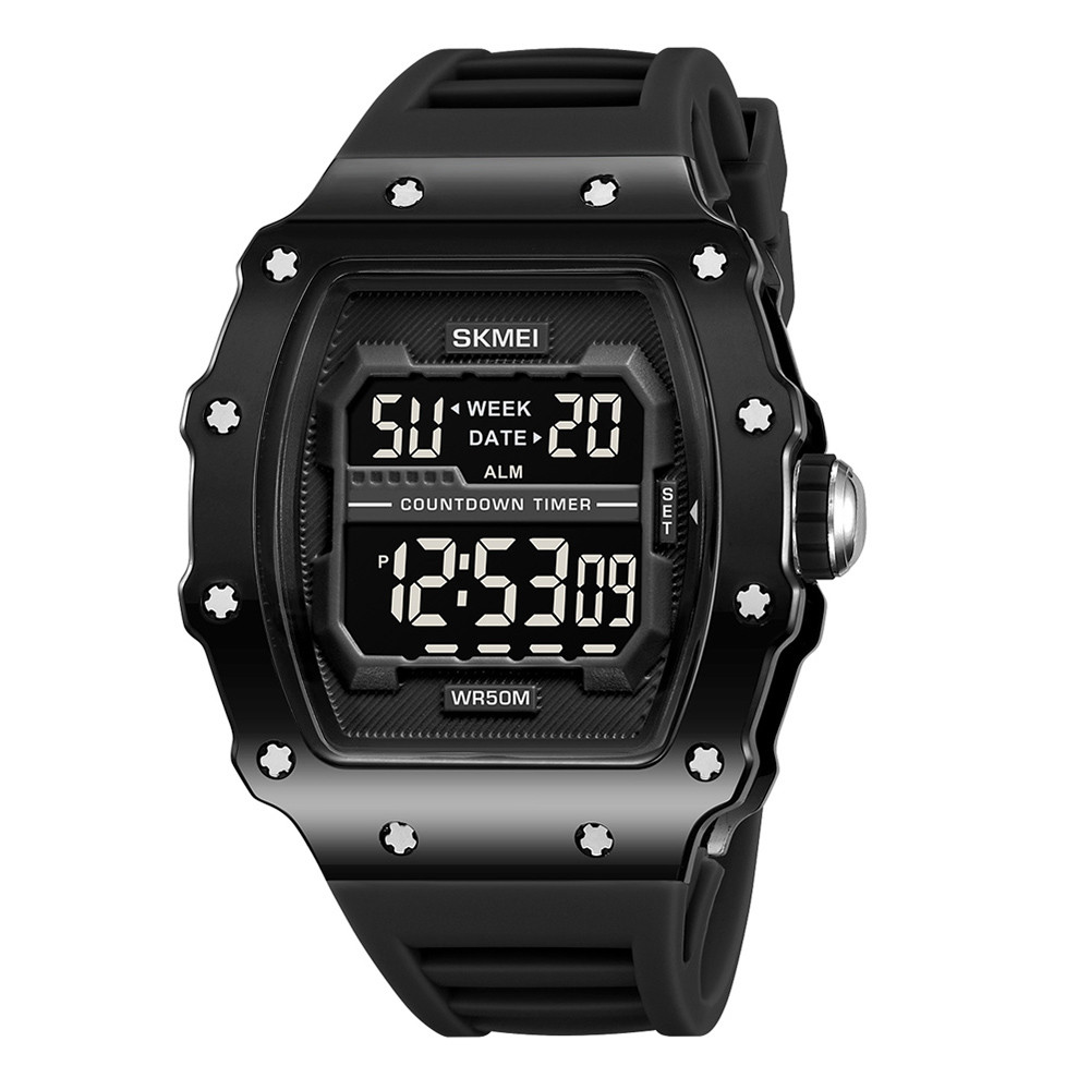 Годинник Skmei 2296BTBKBK Bright Black - це сучасний чоловічий аксесуар зі спортивним та casual стилем. Виконаний із поліуретану й силікону, він забезпечує водонепроникність до 50 м. Модель має електронний механізм та електронний циферблат з арабськими цифрами. Функції включають будильник, календар, другий часовий пояс та секундомір. Годинник обладнаний електролюмінесцентним підсвічуванням для зручності використання в темряві. Додаткові характеристики: розміри корпусу 44,3 х 52 мм, довжина ремінця 24 см і ширина 25 см. Гарантія на пристрій становить 12 місяців. Виготовлено в Китаї, вага годиника складає 64 г.